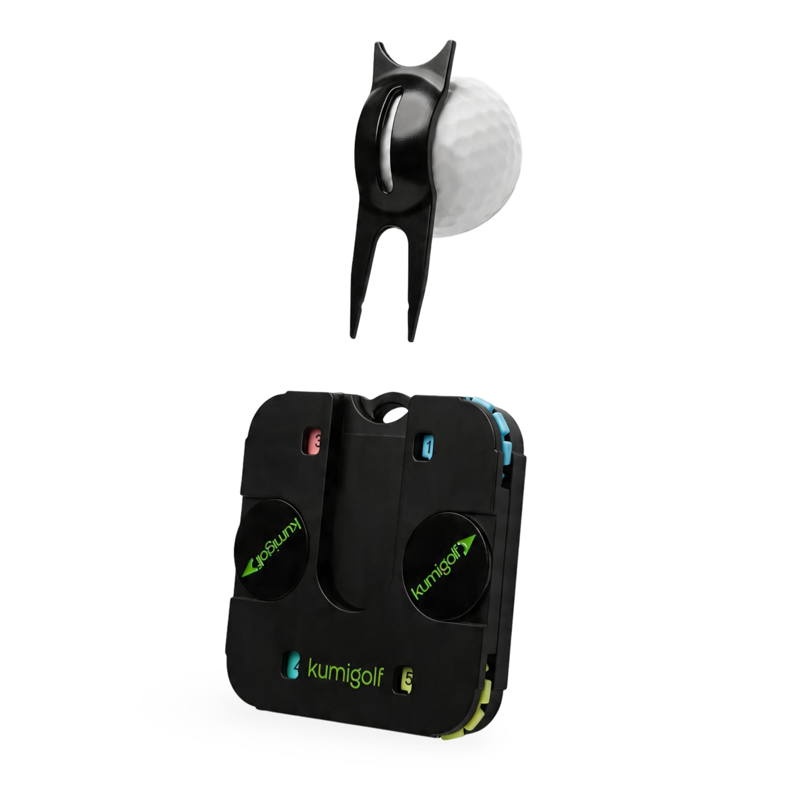 Die kumigolf 5-in-1 Golf Multitool Karte begleitet Sie auf jeder Runde und hält praktische Funktionen jederzeit griffbereit.